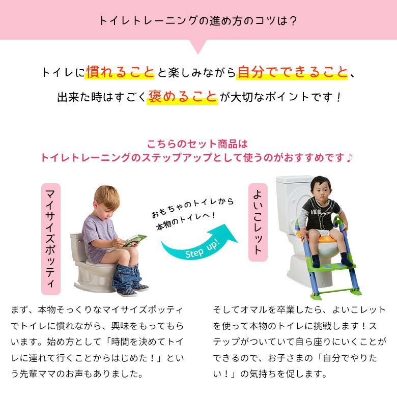 MY SIZE POTTY マイサイズポッティ ■対象月齢 18ヵ月から 体重(耐荷重)23kgまで ■サイズ 幅28×奥行38×高さ38cm ■重 量 約1.3kg ■素 材 ポリプロピレン、ポリエチレン(飛び散りガード) ■販売元 日本育児 ■JAN ホワイト:4955303705946ピンク:4955303706097 ■備考 こちらの商品は、以下の理由で日本国内にて入荷後作業を行っております。
