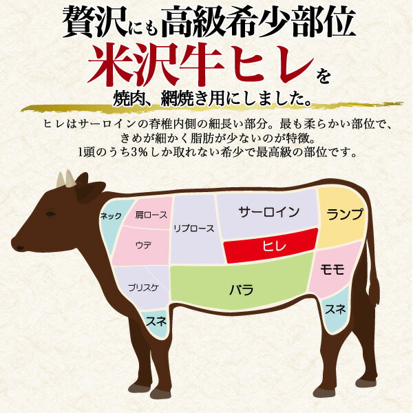 最高級A5ランク 米沢牛ヒレ 焼肉・網焼き用 300g 最高級「米沢牛A5ランク」のお肉をお届けします。